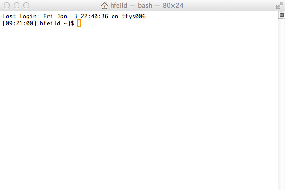 left (in the screenshot above, the text [09:21:00][hfeild ~]$) is